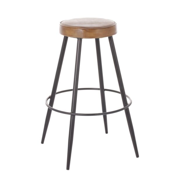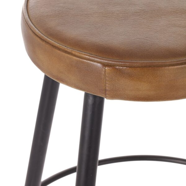 Hoker barowy ze skóry w kolorze beązowym na metalowej konstrukcji.Stołek barowy ze skóry w modnym, loftowym klimacie. Nie tylko wyróżni Twoją przestrzeń, ale również doda jej nowoczesnego szyku. Okrągłe siedzisko pokryte skórą bawolą, osadzone zostało na czarnej, solidnej metalowej konstrukcji Ten wyjątkowy hoker nie tylko zachwyca swoim wyglądem, ale także zapewnia wyjątkowy komfort podczas jego użytkowania.Metalowe, smukłe nóżki nie tylko dodają mu stabilności, ale także stanowią nowoczesny akcent, dzięki któremu hoker doskonale komponuje się z aranżacjami w stylu industrialnym. Minimalistyczny design podkreśla współczesny charakter i sprawia, że jest nie tylko funkcjonalnym meblem, ale również designerską ozdobą wnętrza. Hoker Meris świetnie zaprezentuje się w pomieszczeniach urządzonych w nowoczesnym stylu typu loft: kuchni, jadali czy barze. Dodaj odrobinę luksusu i nowoczesności do przestrzeni za pomocą skórzanego stołka barowego i sprawdź inne meble skórzane w naszej ofercie.Wymiary: śr. 57 cm, wys. 72 cm; siedzisko: śr. 30 cm, wys. 72 cm. Materiał: skóra naturalna bawola / metal. Kolor: brązowy / czarny.