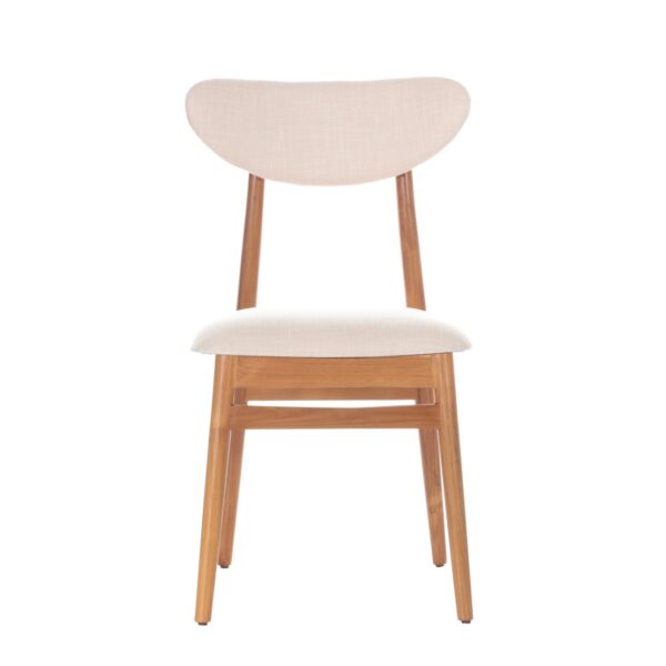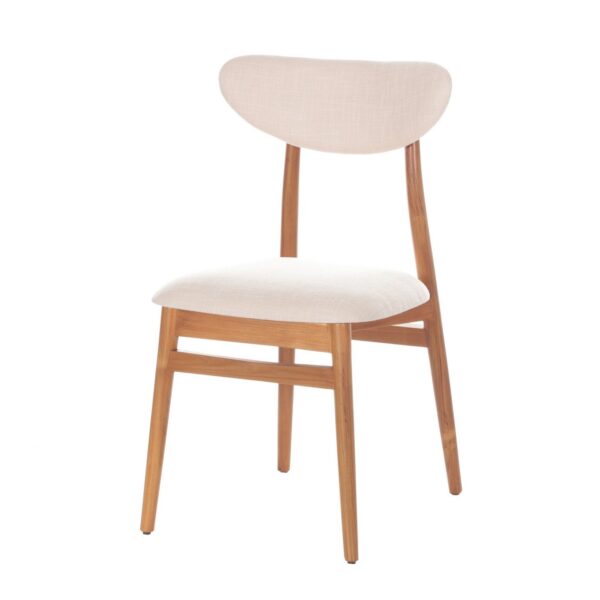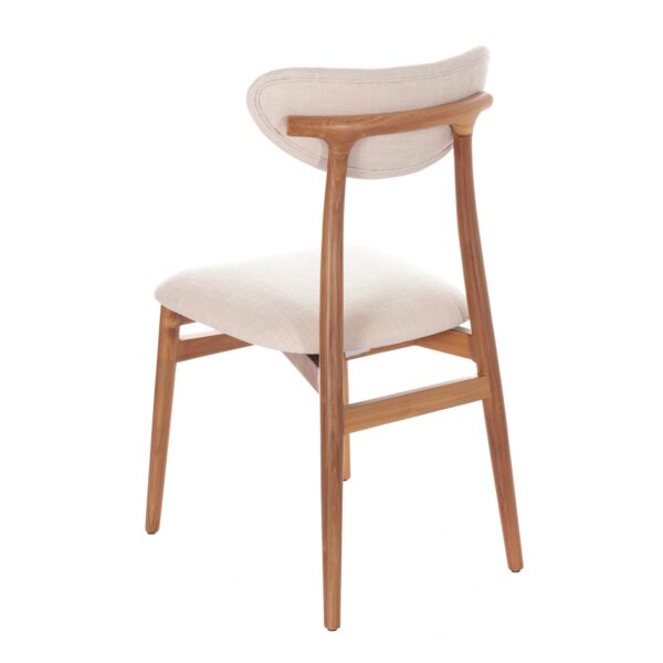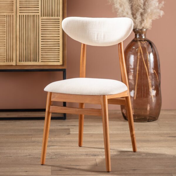 Krzesło do jadalni z drewna tekowego z wygodnym siedziskiem.Krzesło do jadalni z wygodnym siedziskiem i tapicerowanym oparciem w delikatnym beżowo-kremowym kolorze to doskonały wybór, który łączy w sobie komfort i elegancję.Mebel zaprojektowany został z myślą o codziennej wygodzie podczas posiłków i odpoczynku przy stole. Solidna konstrukcja z drewna tekowego gwarantuje jego trwałość i niezawodność, a delikatnie zakrzywione linie oparcia nadają mu wyjątkowego, klasycznego wyglądu, który pasuje do różnych stylów jadalni. To krzesło doskonale komponuje się zarówno z tradycyjnymi, jak i nowoczesnymi aranżacjami.Kolor beżowo-kremowy tkaniny obiciowej siedziska i oparcia dodaje wnętrzu jasności i elegancji, tworząc przyjemną atmosferę podczas wspólnych posiłków.Wymiary: szer. 49 cm, dł. 55 cm, wys. 86 cm.Materiał: drewno tekowe, tkanina obiciowa 100% poliester.