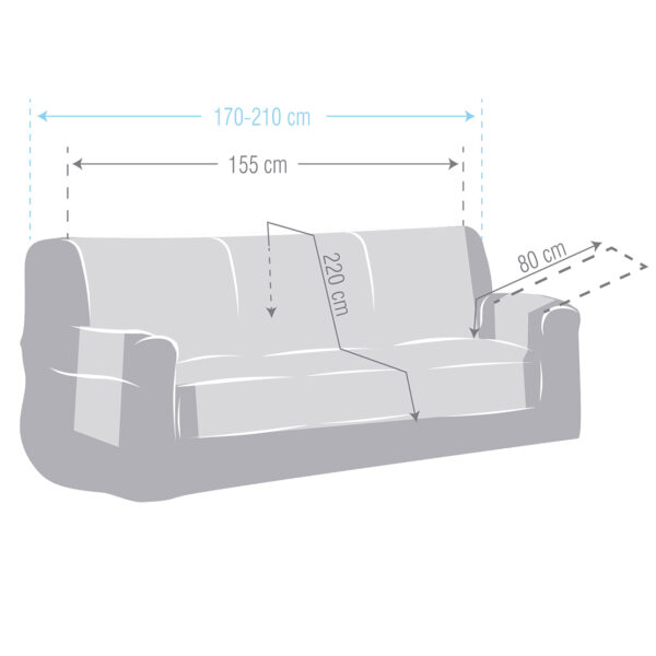 Wymiary: szer. 155 cm, gł. 80 cm, wys. 220 cm. Skład: 55% poliester, 45% bawełna. Kolor: szary melanż. Wyprodukowano w Hiszpanii. Wskazania czyszczenia: